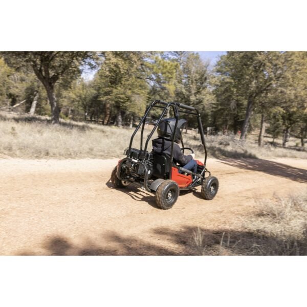 Powerful 98cc gas-powered engine delivers up to 3 HP for off-road adventures Easy pull-start operation ensures convenient and hassle-free starting Accessible kill switch allows for quick power off Automatic transmission requires no shifting for smooth operation Foot-operated rear disc brake provides reliable and responsive stopping power Padded brush cage and seatbelt enhance safety for riders