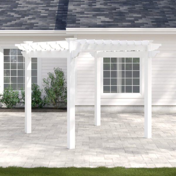 Aside from being an attractive, airy addition to any outdoor space, pergolas provide natural shade when decked out with climbing vines and flowers. This design is crafted from vinyl PVC coated in a crisp white finish and resists the effects of weather, water, and rot, making it perfect for enjoying year-round. This essential piece measures 8 H x 9.5 W x 9.5 D overall and requires little maintenance to keep it looking fresh. The inside dimensions are 90″ x 90″ x 80″. Ground anchors for installation in yard/grass included.